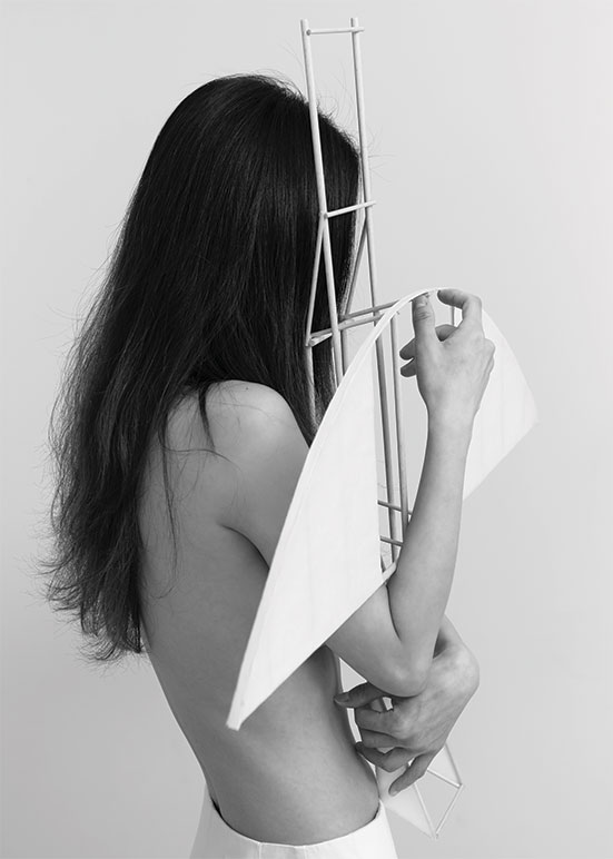 날 것의 인체(사실)는 버블랩 뒤로 숨겨지지만(부재), 인체와 물질의 결합을 통해, 빛과 공기가 빚어낸 ‘새로운 조형적 생명체’의 탄생을 인스톨레이션과 사진으로 해석한다.