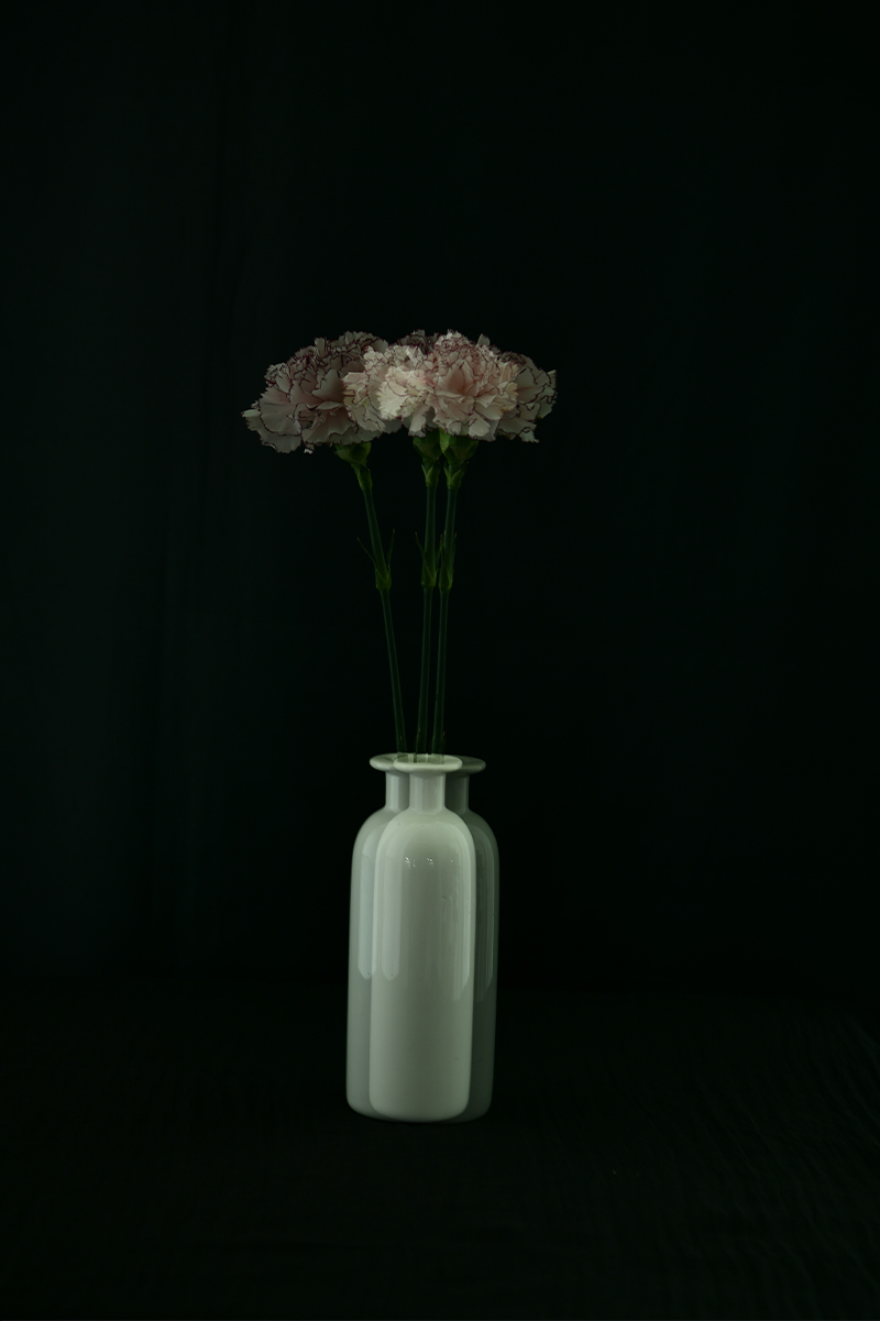 나의 작품 속에서 꽃과 배경은 서로를 Tame길들이며 그들만의 시간과 공간을 만들어낸다. 그러나 그들의 세계는 Ephemeral - 덧없고 순간적이다. 시간에 따라 빛이 달라지고 색이 변하며, 관계의 온도도 달라진다. 그 덧없음 속에서 Invisible -보이지 않는 감정과 기억이 쌓여 잊을 수 없는 풍경이 된다. 작품 속 꽃병은 변하지 않지만, 배경색이 바뀔 때마다 꽃은 전혀 다른 감정을 드러낸다. 붉은벽 앞에서는 생의 열정을, 푸른 천 앞에서는 고요한 사색을, 검은 어둠 속에서는 기억을 머금는다.