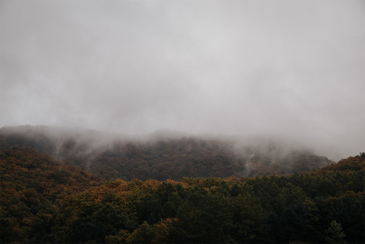 교묘히 죽음을 가리는 도시를 떠나, 인적 드문 야산들을 여러 해에 걸쳐 찾아다녔다. 서리 내린 새벽, 작은 생명들이 모두 흙으로 돌아간 자리. 숲의 몸짓과 온도, 소리와 기운, 어둠과 습기는 나를 현생도 내세도 아닌, 누군가는 연옥이라 부르고 누군가는 바르도라고 부르는 그곳으로 데려갔다.