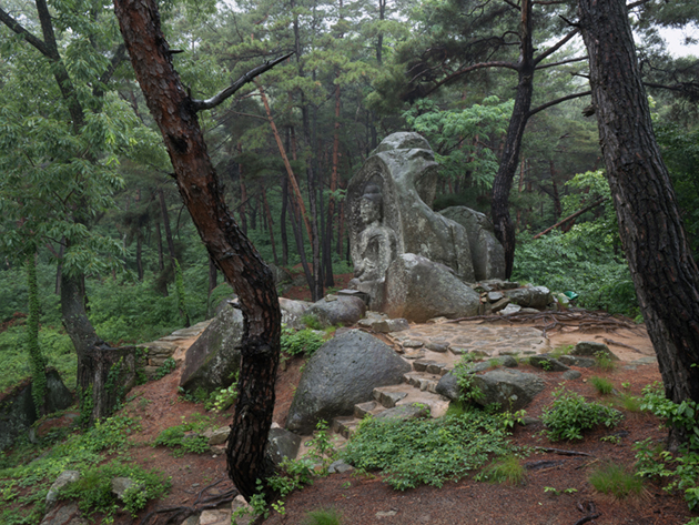 신화 Myth 는 신비롭고 초현실적이며 신성성과 진실성을 가지고 우리에게 다가와 긍지를 주고 꿈을 꾸게 한다. 낙원 Paradise 은 긍정적이고 조화로운 영원한 장소를 느끼게 한다. 유혜숙은 2017년부터 전북에서 발현되고 자리 잡은 미륵신앙의 발자취를 찾아 미륵불을 촬영해왔다. 이번 전시에서는 미륵과 어우러진 자연의 바위, 꽃, 나무, 물결, 바람의 숨결들을 담아낸 이미지들을 중심으로 전시하며 현실세계와 선계의 경계를 나타내는 동천문 洞天門, 특별히 모악산 금산동문 金山洞門 을 비디오로 촬영하여 낙원을 향한 본향의 소리에 귀 기울여보는 작업을 시도하였다. 신화나 낙원은 과거의 시공간을 포함한 현재성에 머무를 때 짙푸른 미소를 생성하며 영원한 미래를 그리는 인간의 꿈을 채색해 나간다.