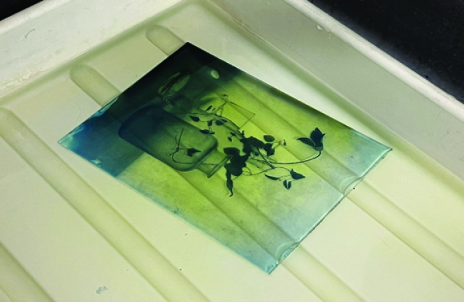 1일차에서 이어짐: 사이징한 유리 / Cyano / vandyke 용액 (질산은 + 구연산철 암모늄 + 주석산) / 수채화지 / 마스킹테이프 / 픽서(fixer) / 밧드 8개 |